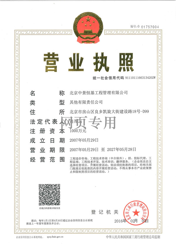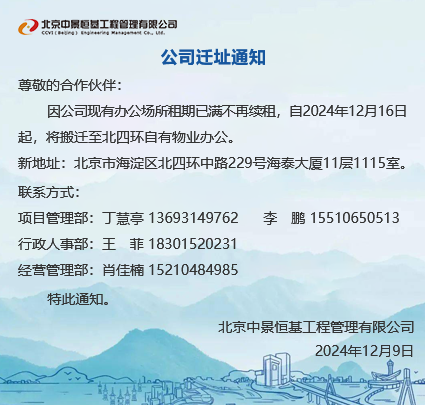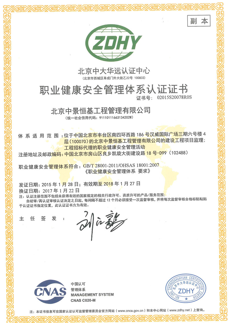 北京中景恒基工程管理有限公司(以下簡稱“公司”) 具有工程監(jiān)理綜合資質(zhì)、造價咨詢甲級資質(zhì)、水利工程、人防工程監(jiān)理資質(zhì)和工程招標代理資質(zhì),是全國百強監(jiān)理企業(yè)之一。主要從事工程監(jiān)理、造價咨詢、項目管理、招標代理等咨詢服務(wù) 業(yè)務(wù)。 公司自成立以來,始終注重自身建設(shè),強化內(nèi)部管理,形成了一套標準化、信息化、科學(xué)化的管理模式。率先通過了ISO9001質(zhì)量管理體系、IS...